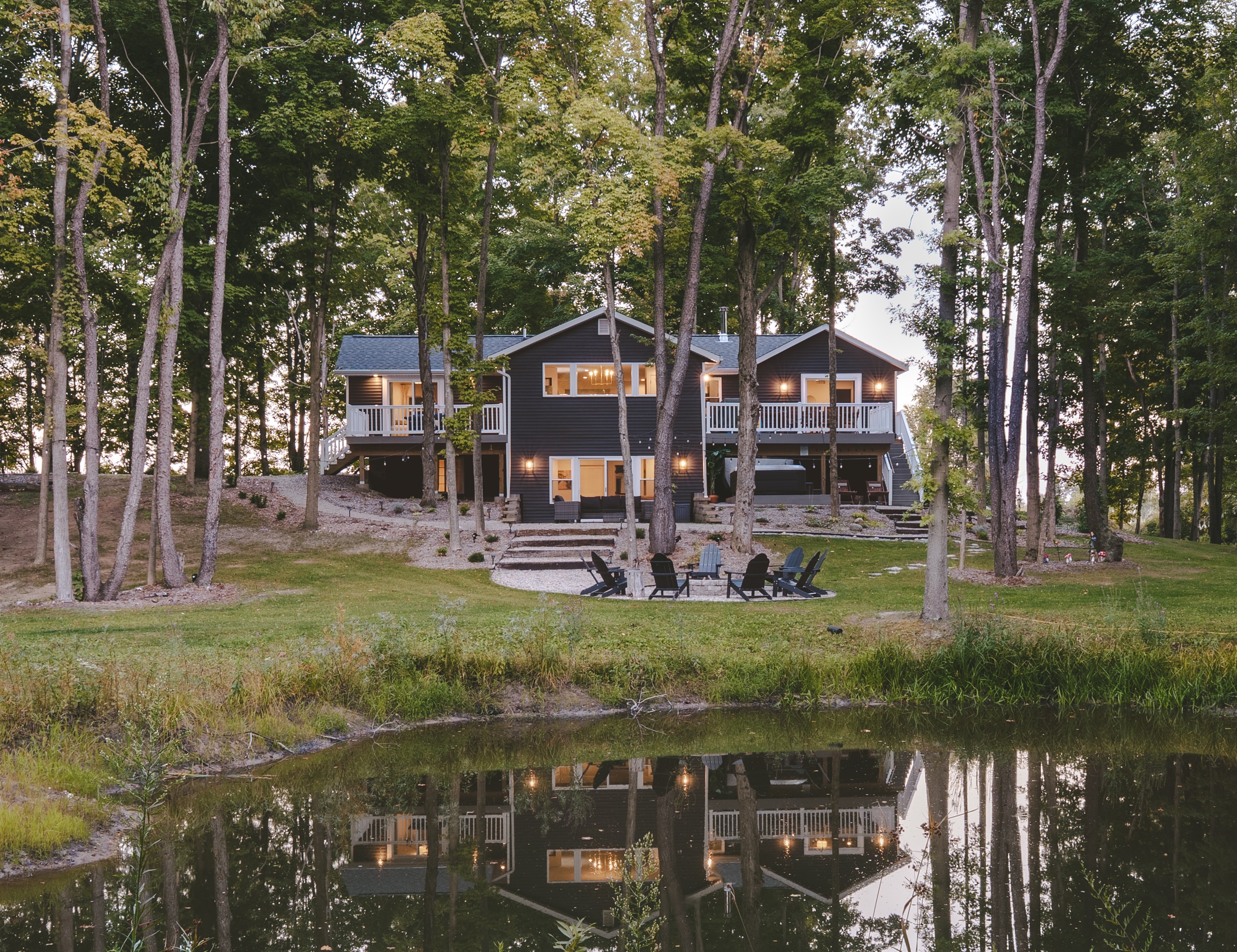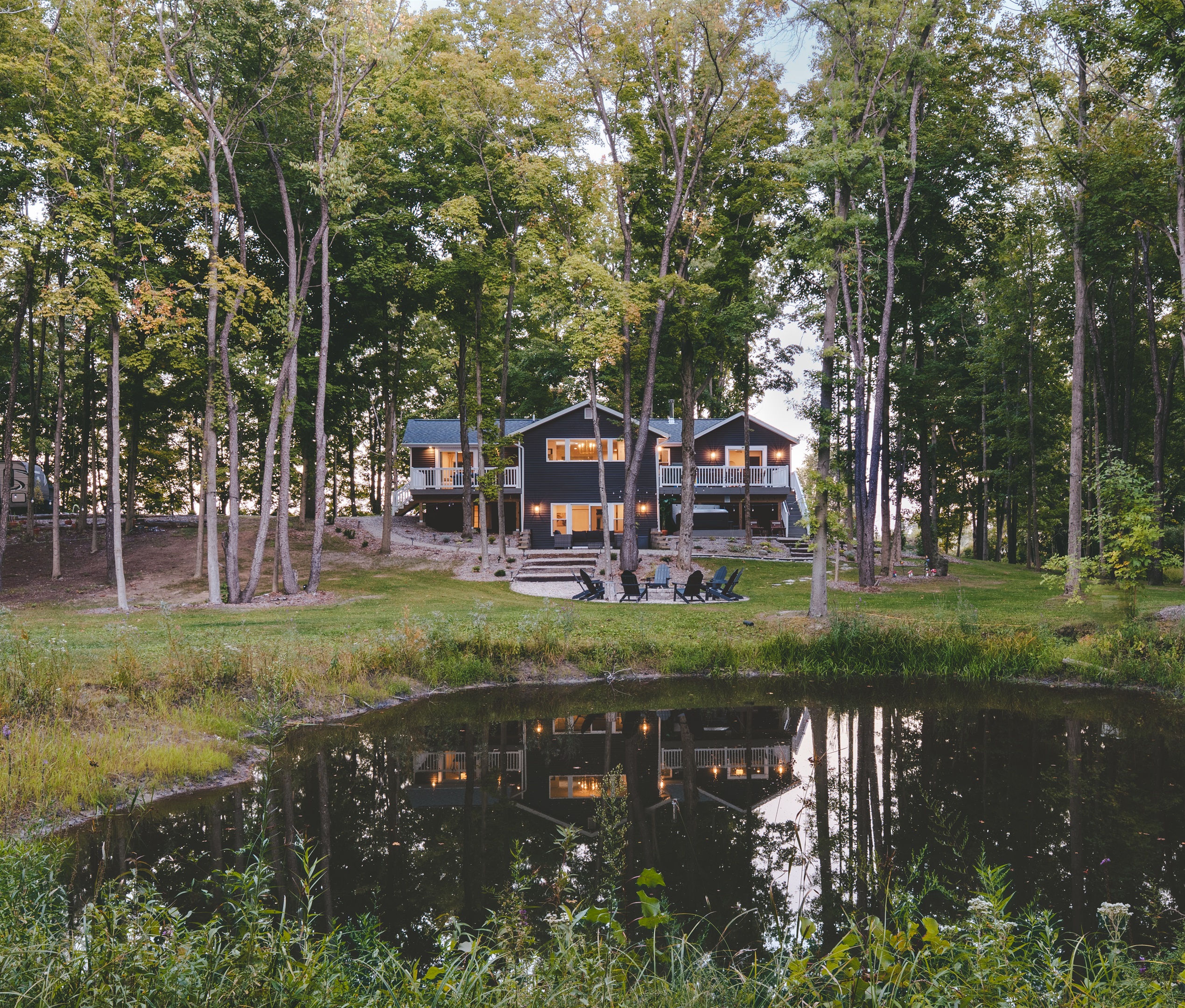 Step outside to relax on the expansive patio, enjoy the peaceful pond, gather around the fire pit under the stars or soak in the private hot tub.