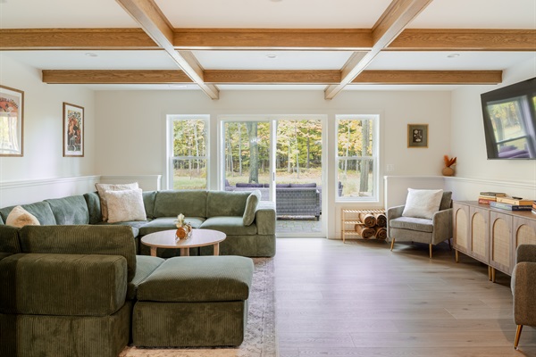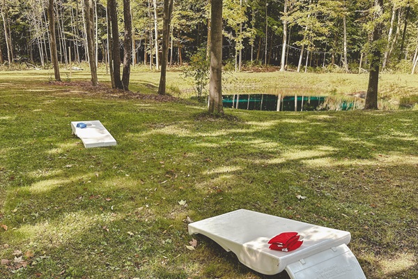 Enjoy the outdoors with a variety of lawn games, including cornhole, bucket golf, and a mini pickleball yard setup