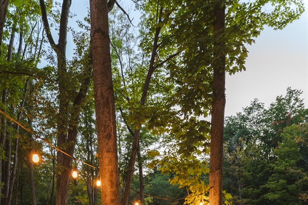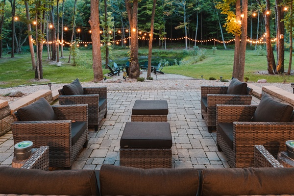 Spacious outdoor lounge ideal for sipping wine, sharing stories, and soaking up the serene woodland setting.