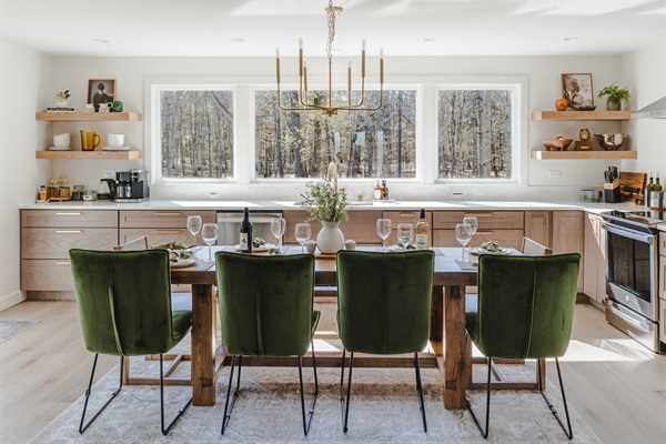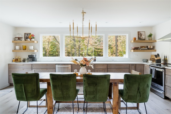 Enjoy meals with a view in this spacious eat-in kitchen featuring seating for 8 and large windows that bring the outdoors in