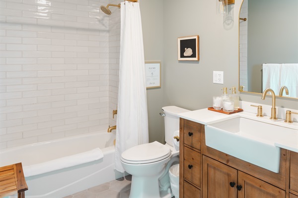 Cozy full bathroom with a tub and shower – ideal for families or guests who enjoy a soak.