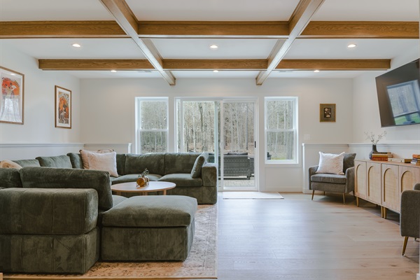 Located in the heart of the home, the record player and vintage records add a soulful soundtrack to your getaway.